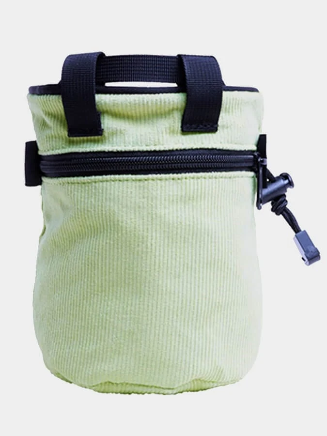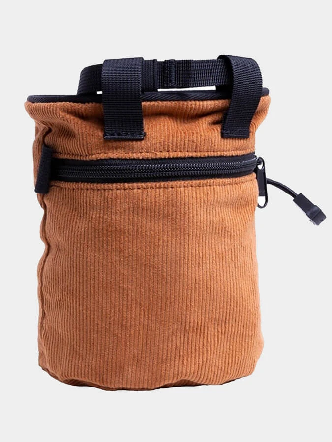 The Corduroy chalk bag comes with a drawsting cord lock closure, chalk brush holder and a zippered pocket for your keys or small climbing essentials.