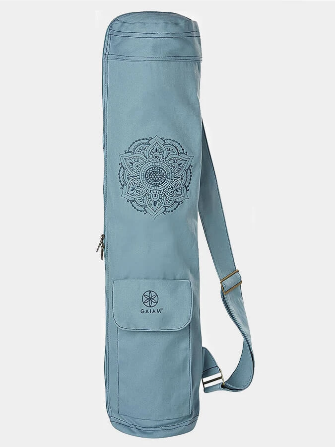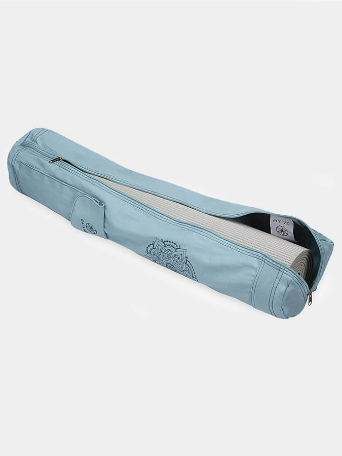 Gaiam’s Embroidered Cargo Mat Bag puts the fun in functional. A little extra length accommodates just about any mat while a roomy expandable pocket holds everything else.