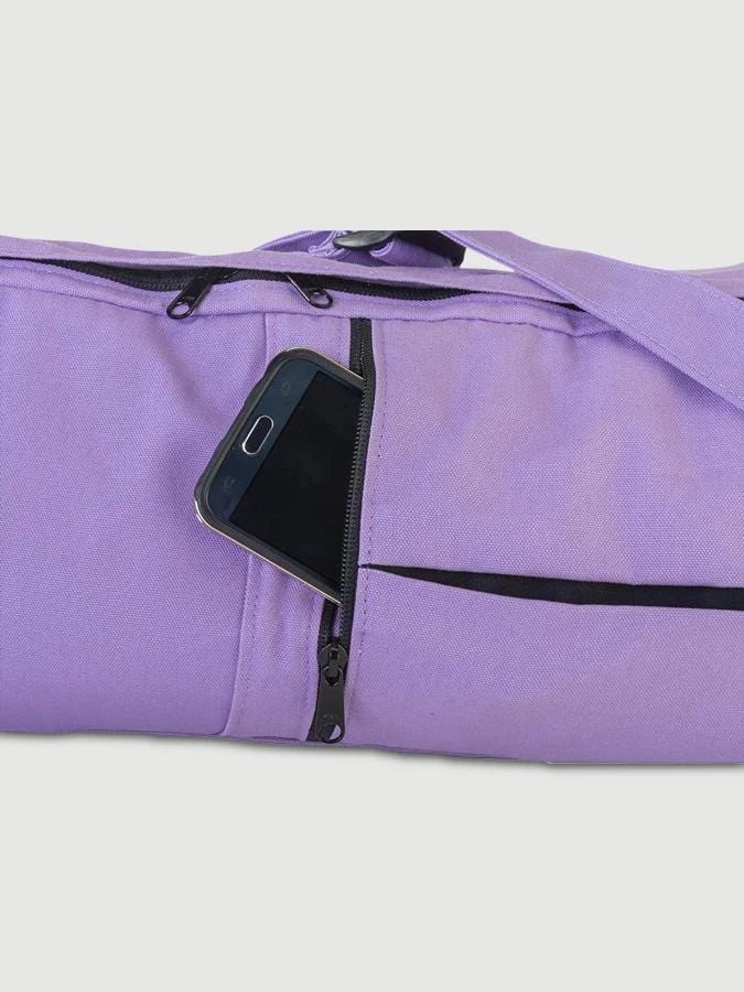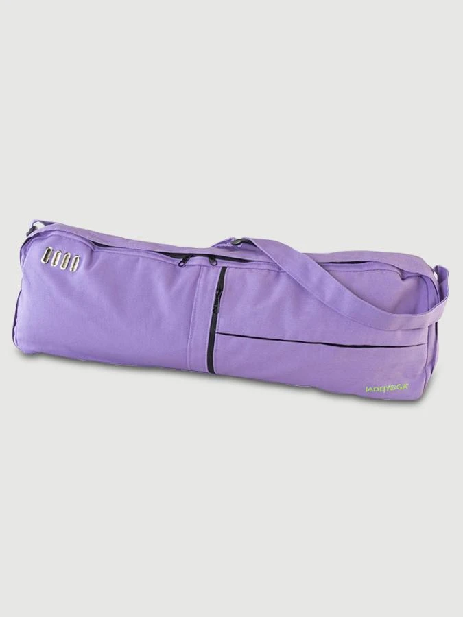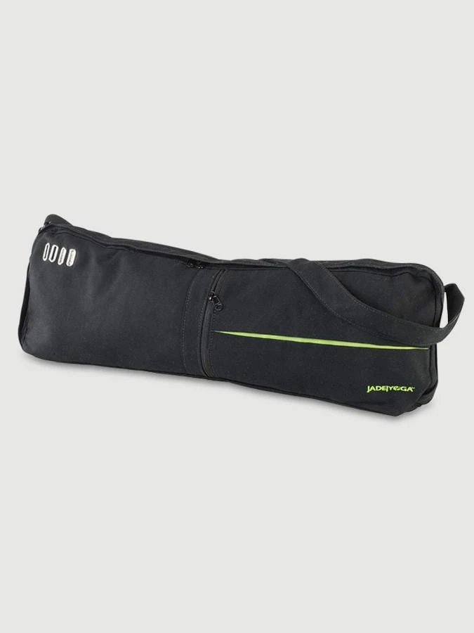 one main compartment large enough to hold a mat, block and towel or change of clothes and a smaller outside pocket for personal items.