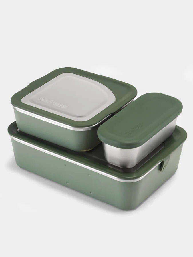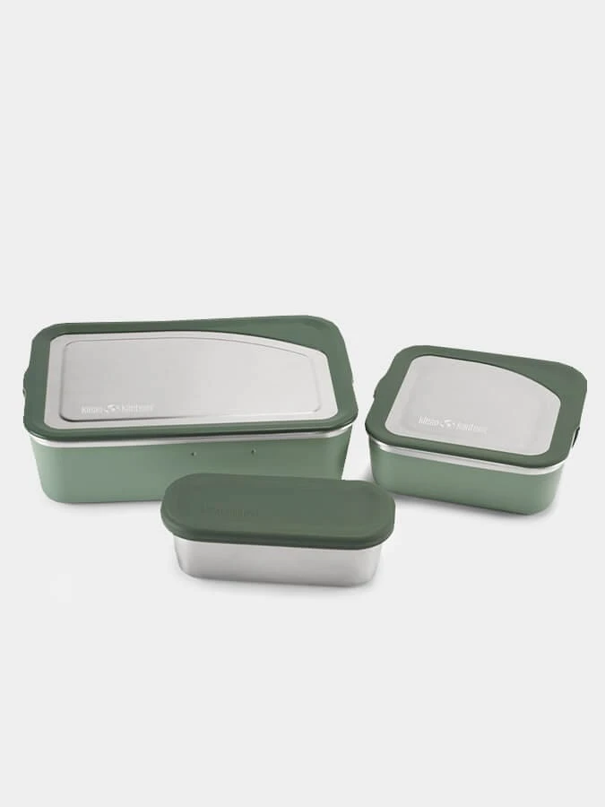 Composed of the Rise Big Meal, Lunch and Snack Food Boxes, the nestable, stackable Rise Food Box Family Set gives you tools to Bring Your Own™ food on the go, for lunch, work or anywhere, Made of certified 90% post-consumer recycled 18/8 stainless steel and food-grade silicone, the sustainable Family Set is lightweight, low-profile and leakproof to make packing a cinch. Microwave, oven and dishwasher safe.