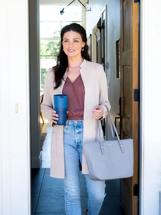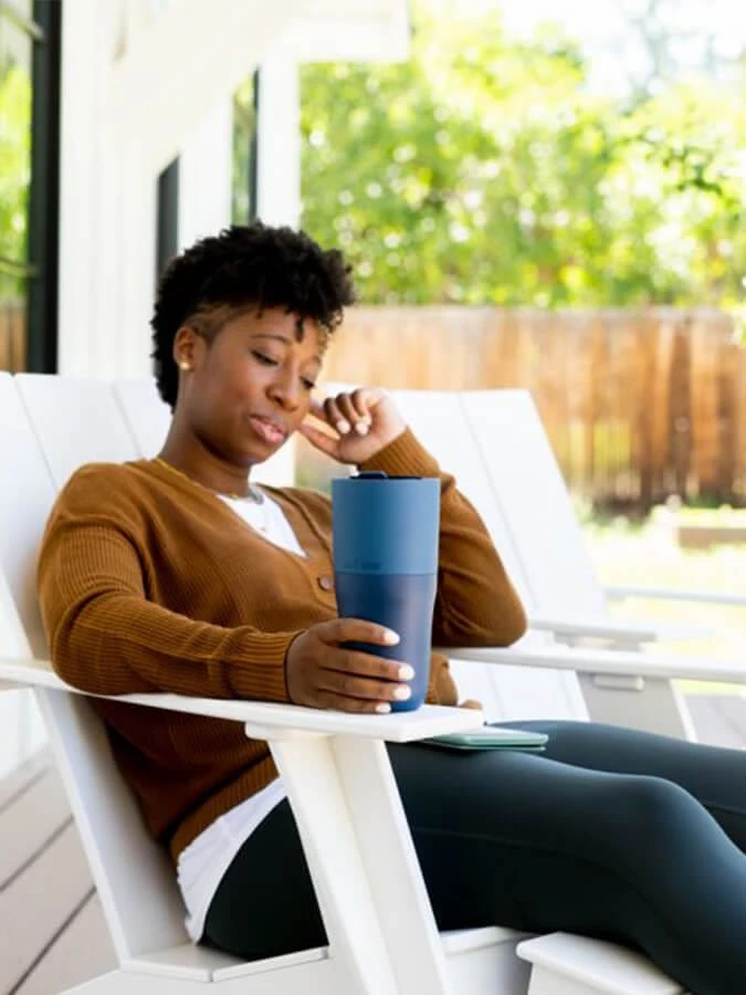 The tapered shape of the 26oz Rise Tumbler stacks for easy storage, fits most cupholders and comes with our new splash- and spill-proof Flip Lid.