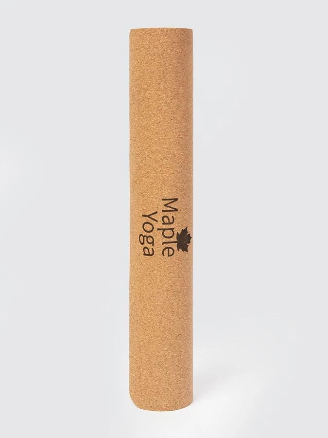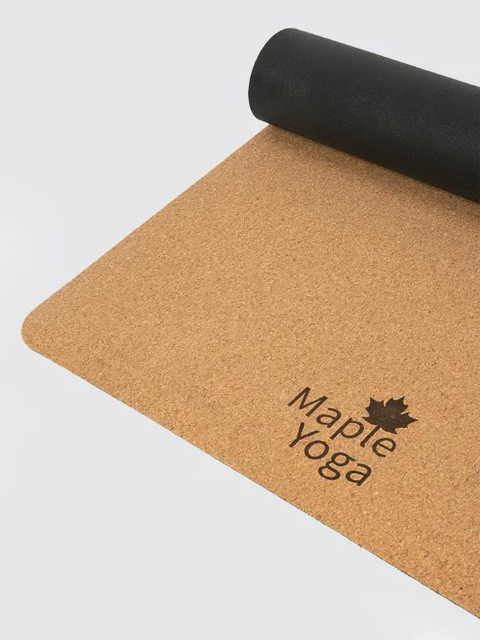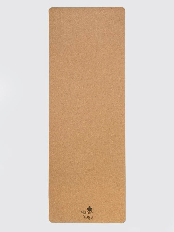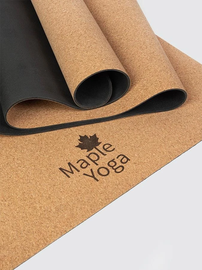 Maple Yoga Cork Yoga Mats are made from a blend of natural cork and recycled cork to create the top surface of our cork mat and a natural rubber backing attached with a layer of non-toxic adhesive and fabric scrim to create the bottom surface.