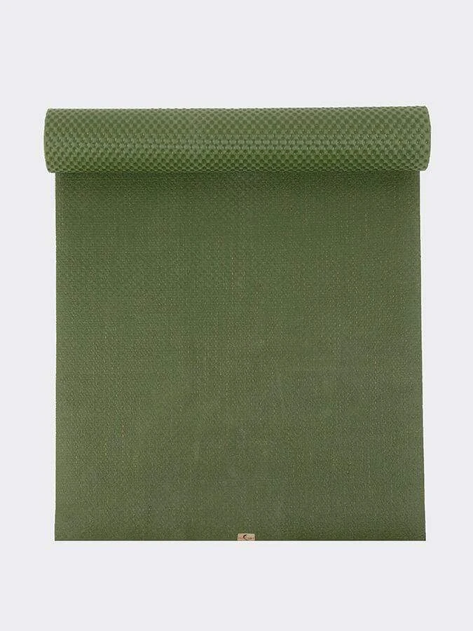EcoYoga Mats have a pure rubber underside to grip the floor and jute fabric/rubber mix on top. The fabric gives a highly durable, tactile and pleasantly natural surface to work on and the rubber gives superb grip. A mat ideal for all Yogis and Yoginis as the Jute mat combines a cloth surface and sticky mat in one.