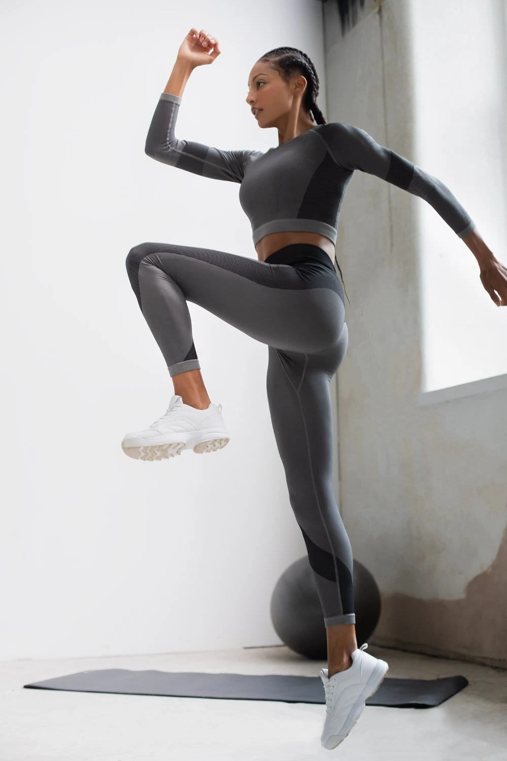 The Tombo seamless range is the ultimate in both comfort and style. This high waisted, on-trend colour panelled legging allows for maximum movement in a seamless knit for comfort.