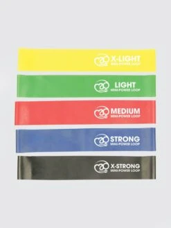 This Mini Power Loop set of 5 resistance bands gives you the option of 5 different strength options so you can progress your workout as you get stronger, or select an appropriate level of band for the muscles you are choosing to train.