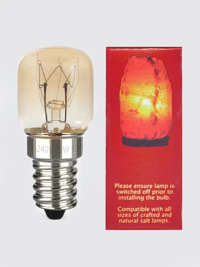 This is a replacement 25W Incandescent bulb compatible with all of our salt lamps. This bulb is perfect if you are looking for your salt lamp to be even brighter than standard, particularly if you have a 15KG+ lamp.