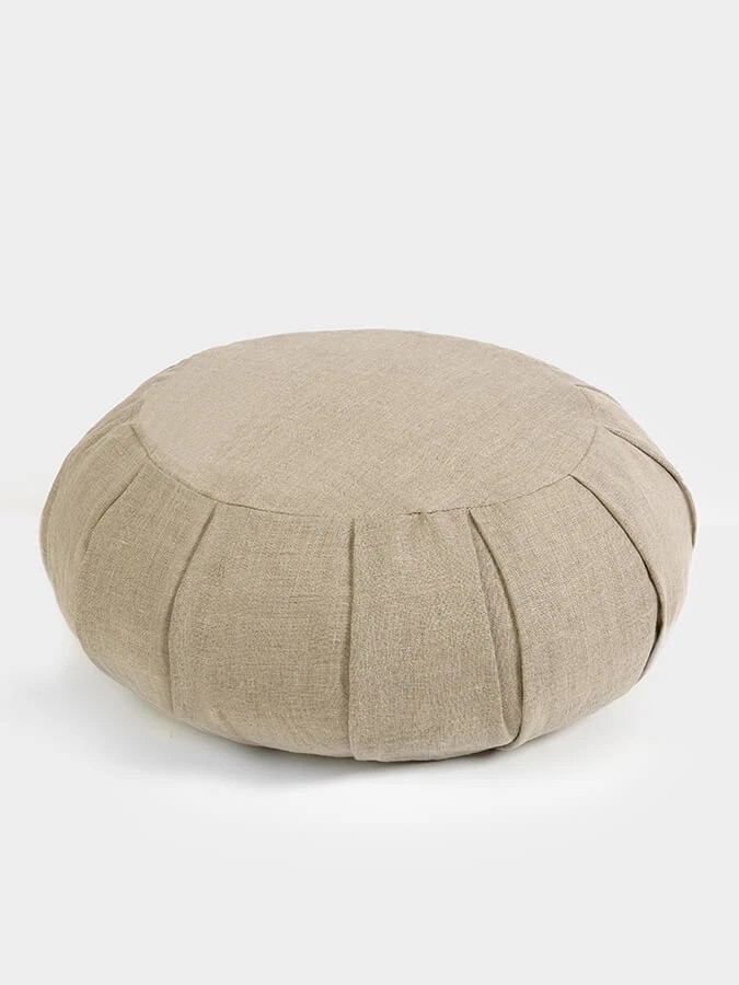 The Yoga Studio EU Organic linen round sitting cushion is ideal for Zen meditation. It is ideally used for lotus or half-lotus meditation postures and is the most usable size of cushion that will support a variety of different postures.