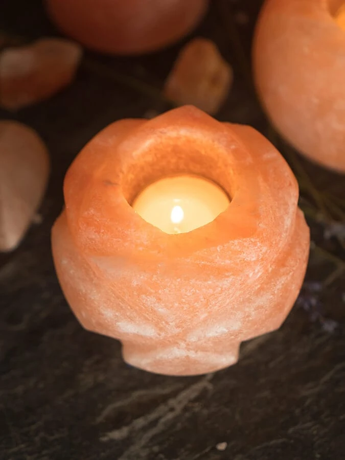 Yoga Studio Himalayan Salt Candle Tea Light Holder – Lotus Flower, is made using salt that is mined from deep underground mines in Khewra, Pakistan, the only source of true Himalayan pink salt.