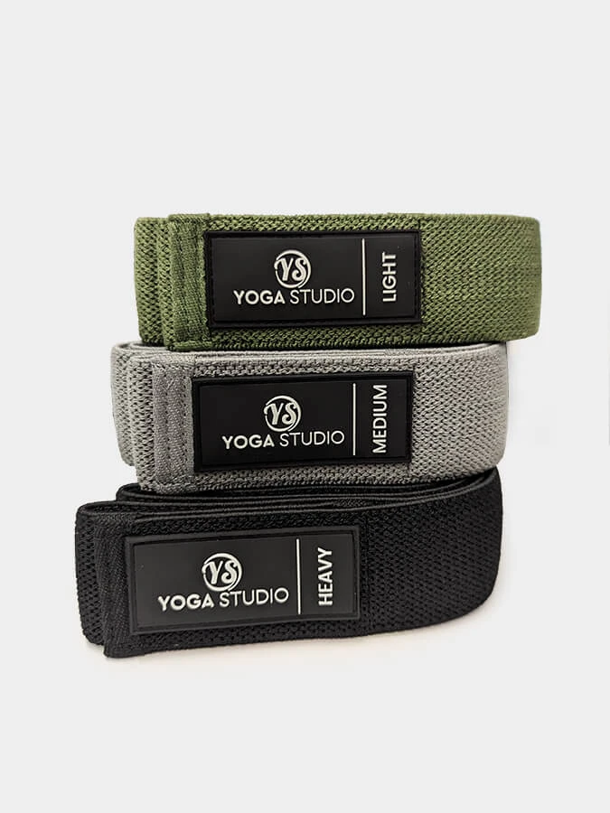 Yoga Studio long loop resistance bands set is made of high quality cotton polyester material which won’t rolling up during workout.