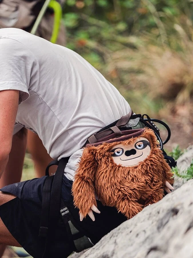 Improved closure system. Elasticated and adjustable draw cord closure for tight closes to better retain chalk and prevent chalk spills.